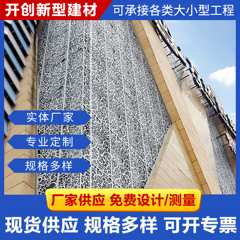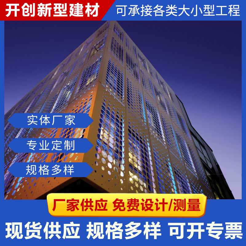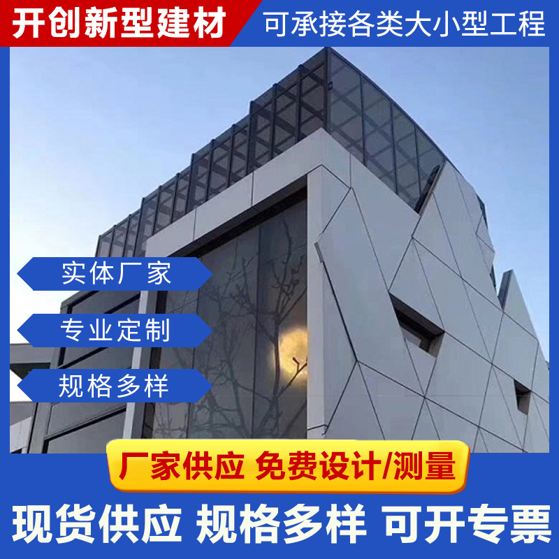 山東開創新型建材有限公司是拉網鋁單板、木紋鋁單板、幕墻鋁單板、鋁方通系列、沖孔鋁單板、雕花鏤空板、長城鋁單板、異形天花定制、圓柱鋁單板等產品專業生產加工的公司,擁有完整、科學的質量管理體系。
